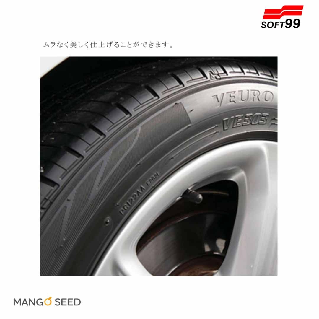 - ・タイヤワックスをスポンジに適量とり、タイヤ側面に塗ってください。または塗布されたタイヤワックスを塗りのばしてください。