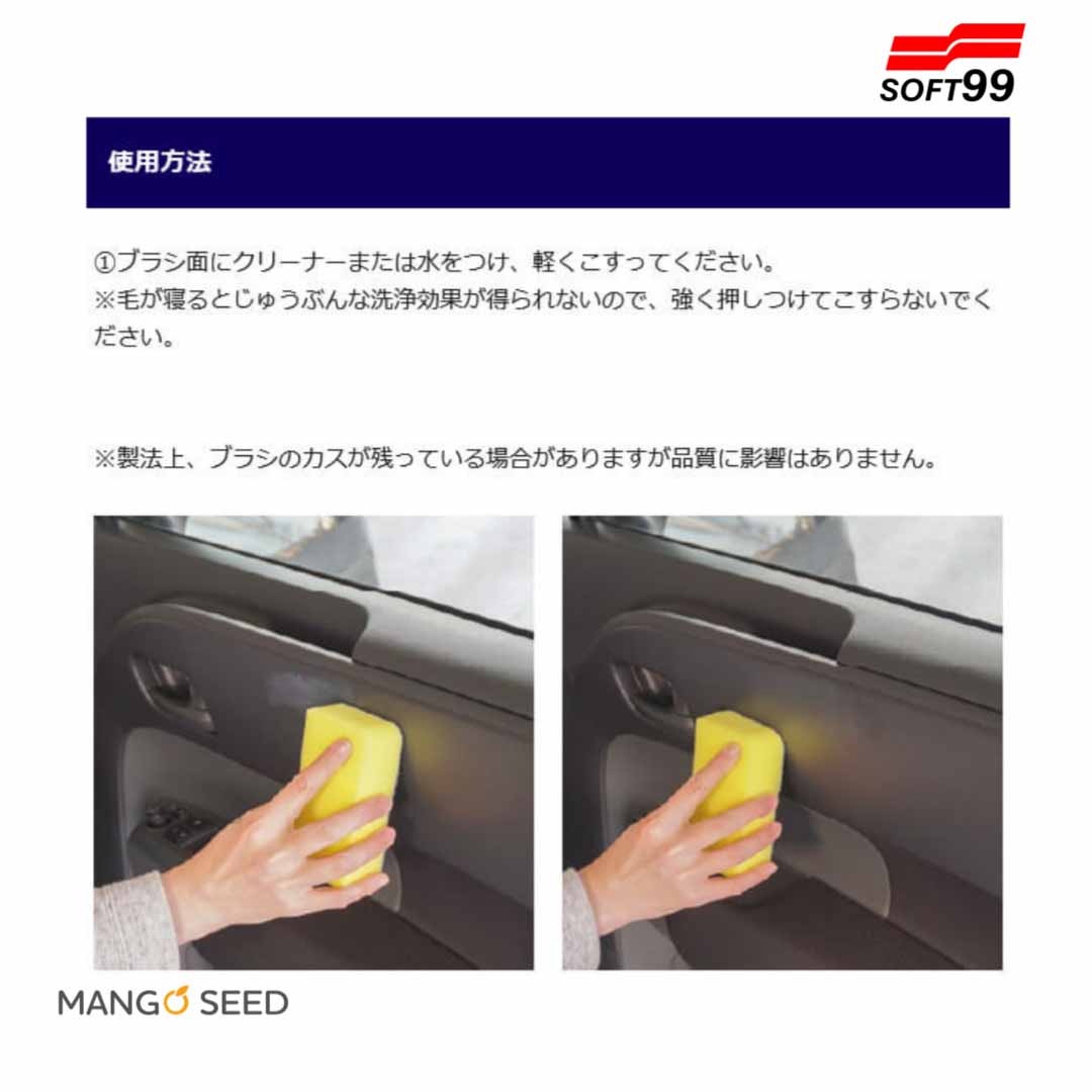 車内パネルのシボ奥に入り込んだ日焼け止め汚れをかき出すブラシ