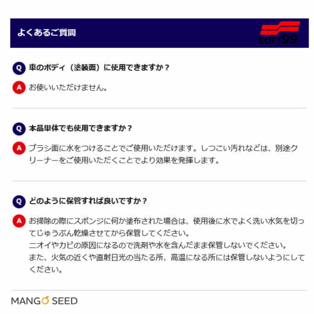 | 用途 | 自動車用未塗装樹脂、本革、合成皮革、布シート洗浄用 |